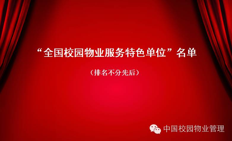 【發布】“中國(guó)校園物(wù)業(yè)服務實體(企業(yè))百強”名錄及“全國(guó)校園物(wù)業(yè)服務特色單位”名單