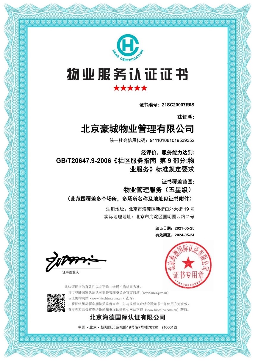 物(wù)業(yè)服務5星認證